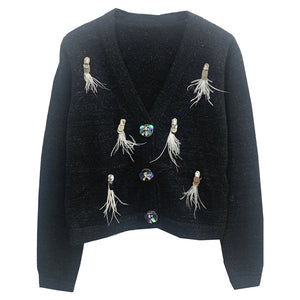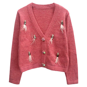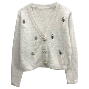 Embellished Feather Button Cardigan