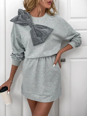 Slip into effortless chic with the Perfee Grey Bow Dropped Shoulder Mini Dress – where cozy sweatshirt vibes meet statement party style. Made from a soft, stretchy polyester–spandex blend, this dress feels like your favourite oversized sweater but looks polished enough for brunch, birthdays or a night out.