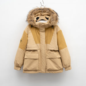 Women’s Yellow Thick Puffer Jacket with Faux Fur Hood